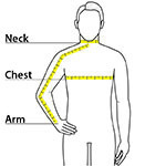 | Neck | 15 - 15 1/2 | 15 1/2 - 16 | 16 - 16 1/2 | 16 1/2 - 17 | 17 - 17 1/2 | 17 1/2 - 18 | 18 - 18 1/2 |