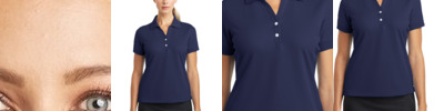 An understated pebble texture meets high-performance moisture -wicking from Dri-FIT fabric in this Nike Golf style. Tailored for a feminine fit and designed to keep you comfortably dry, features include a self-fabric collar, four-button placket and open hem sleeves. Pearlized buttons are selected to complement the shirt color. The contrast Swoosh design trademark is embroidered on the left sleeve. Made of 3.9-ounce, 100% polyester.